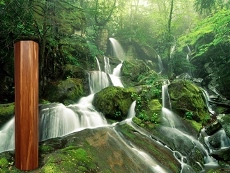 v priestoroch odrušených od škodlivých technológií. Zvuk pripomínajúci kvapky dažďa nie je púšťaný elektronicky, ale je tvorený v drevených stĺpoch. V nich sa presýpajú kryštáliky kremíka podobne ako v presýpacích hodinách.